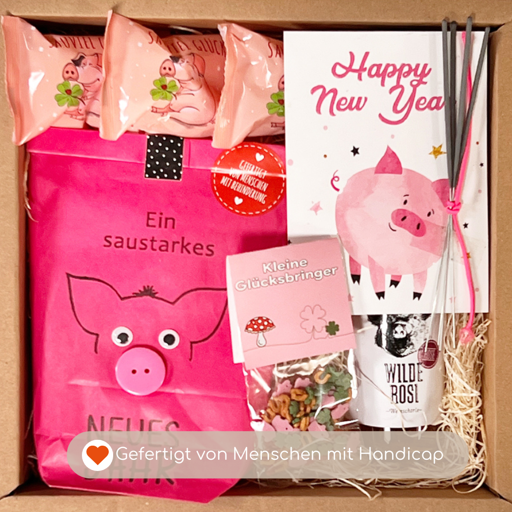 - „Ein Saustarkes Neues Jahr“ Wundertüte: gefüllt mit süßen Glücksbringern, die Freude und ein Lächeln schenken.