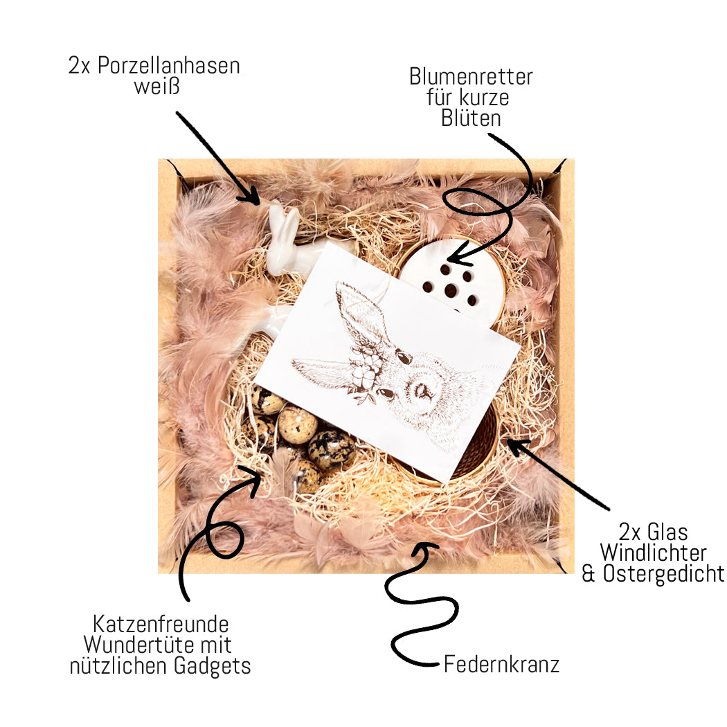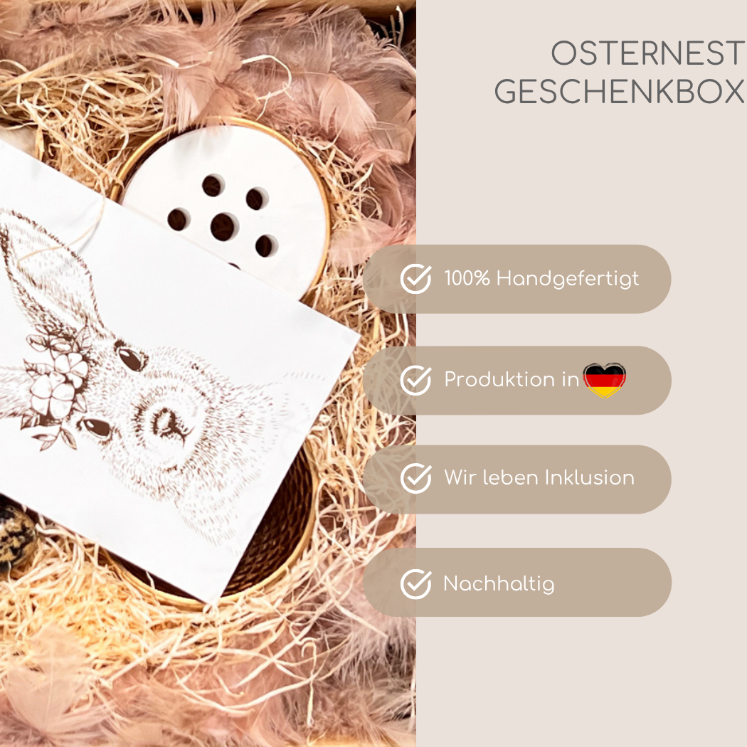 Mit der WOW Box Osternest Tischdekoration verschenkst du nicht nur Gegenstände, du verschenkst Freude, Liebe und kleine Momente des Glücks. Jedes Detail wurde sorgfältig ausgewählt, um die Osterzeit unvergesslich zu machen.