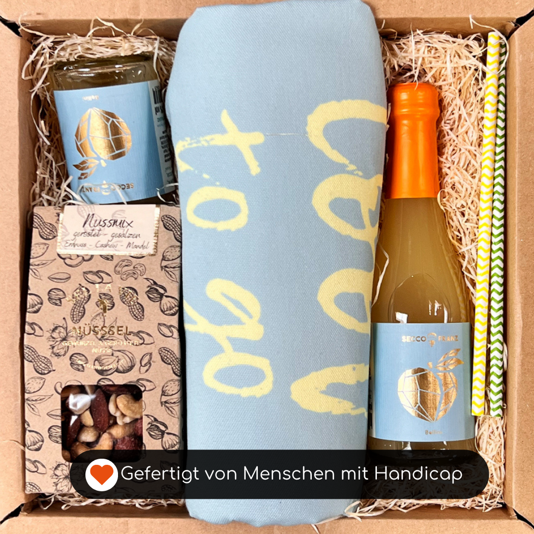 - Inklusive Handarbeit: die Verpackung wird von Menschen mit Handicap liebevoll gestaltet.