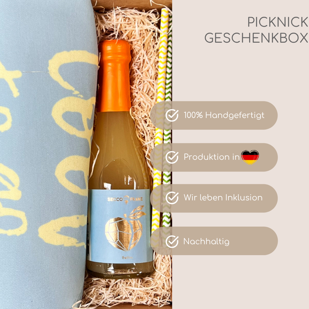 Unsere Picknick Geschenkbox steht für mehr als nur Genuss. Sie ist auch ein Statement für Nachhaltigkeit, Inklusion und soziales Miteinander: