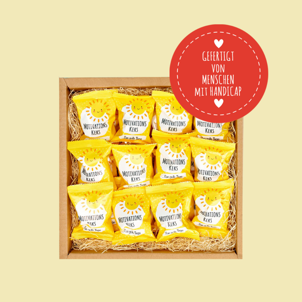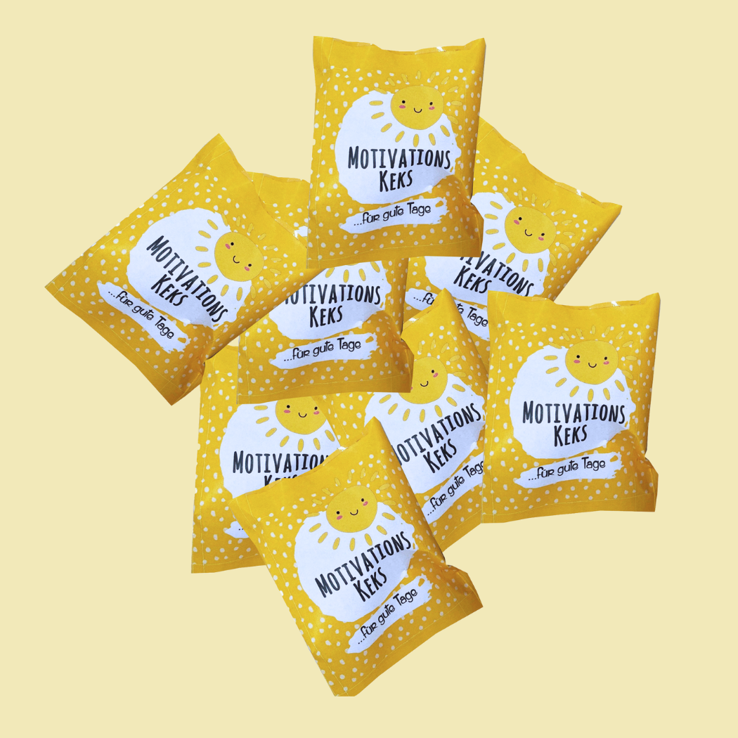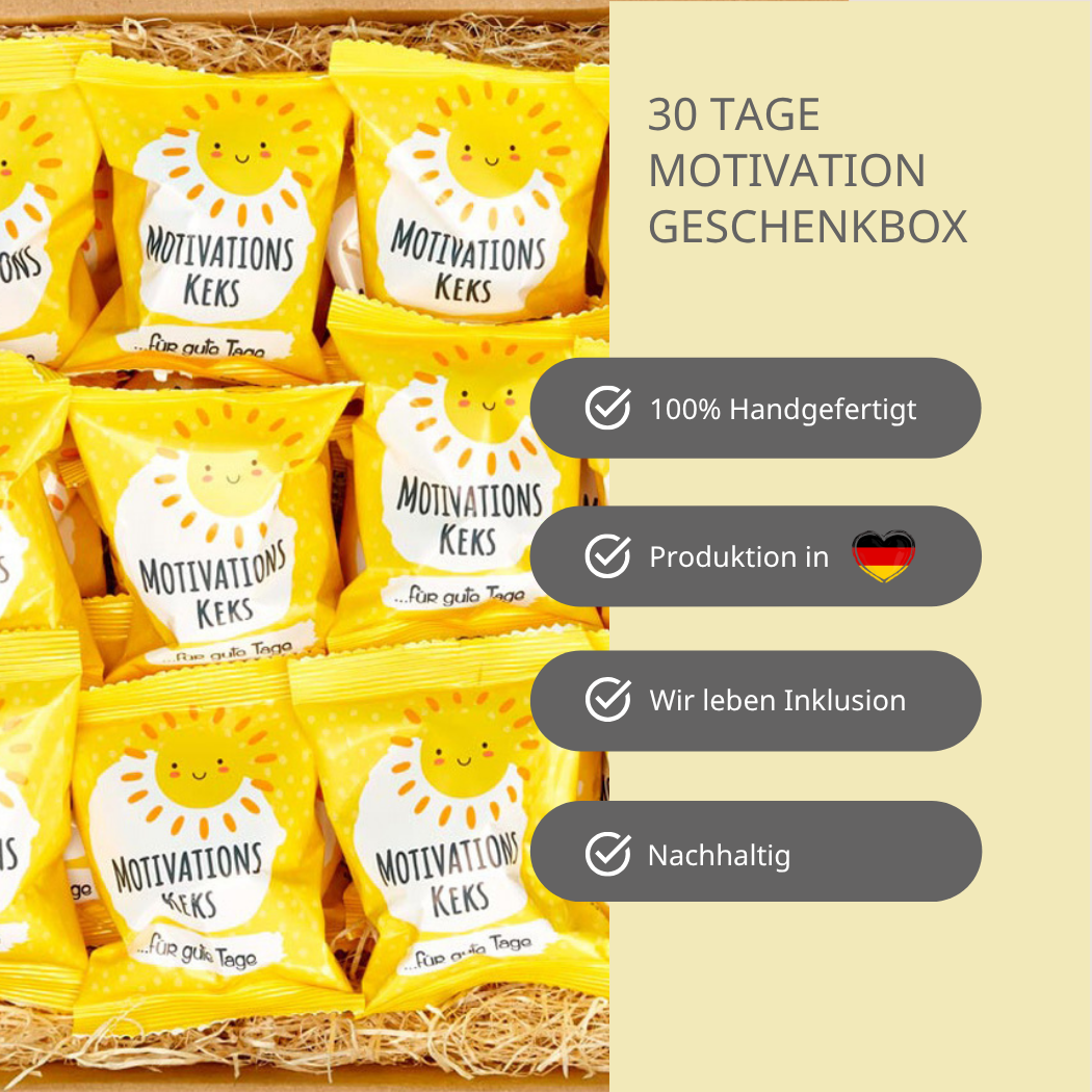 - 30 Glückskekse mit Vanillegeschmack – Jeder Keks enthält einen motivierenden Spruch für den Tag.