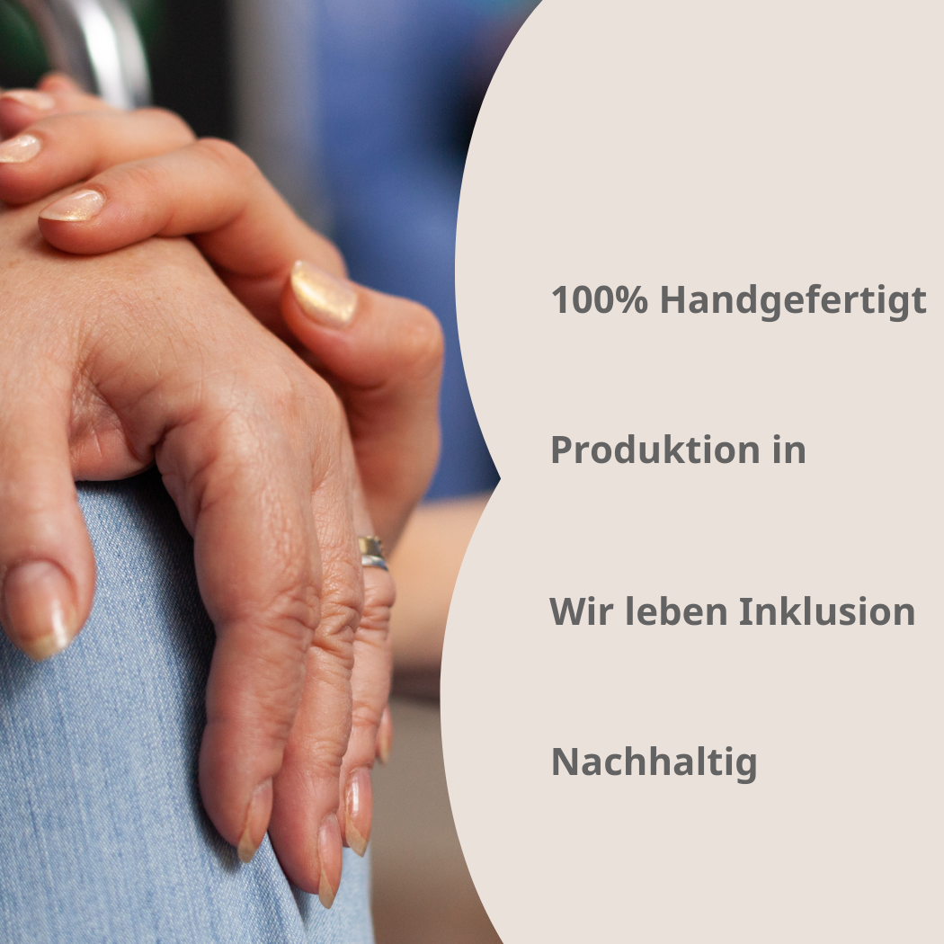 - Inklusive Manufakturarbeit: Verpackt werden sie von Menschen mit Handicap, die in unserer Wunderle Manufaktur einen sicheren Arbeitsplatz finden.