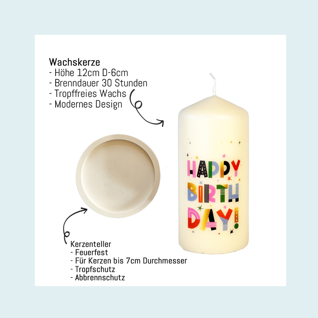 Geburtstagskerze mit Kerzenteller für den einen, ganz besonderen Wunsch, Brenndauer ca. 30 Stunden