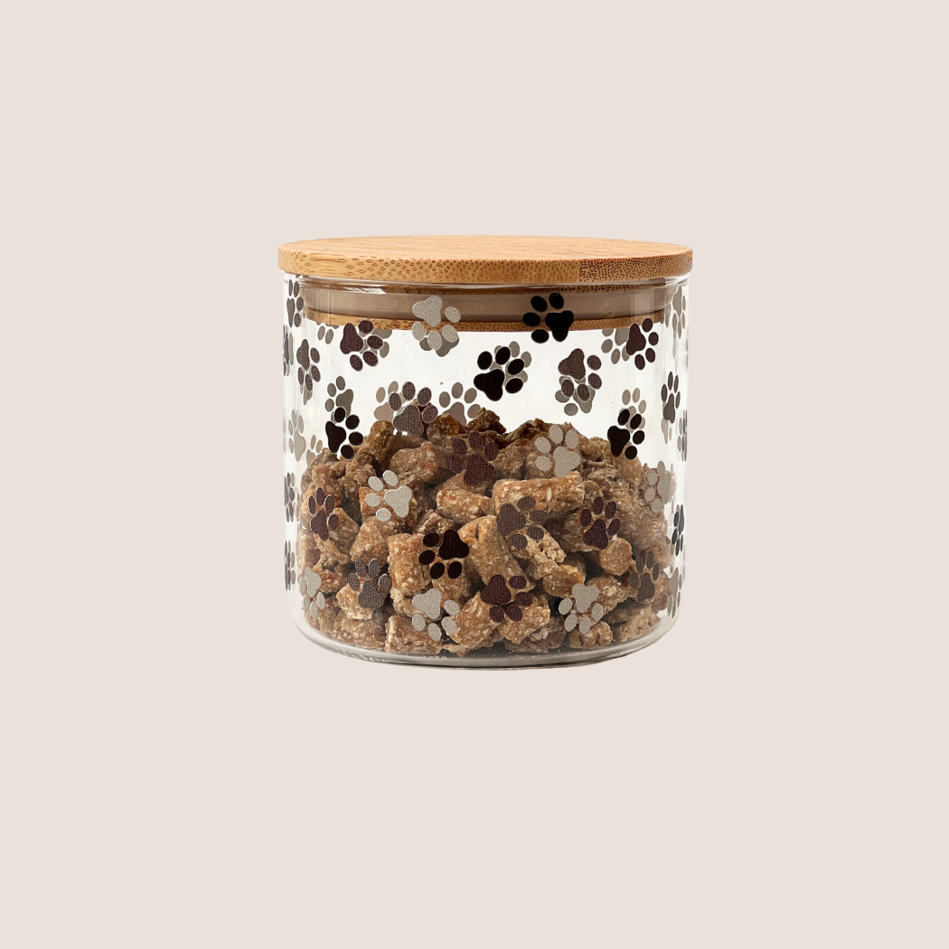 Ein weiteres Highlight der Katzenfreunde Geschenkbox ist unser tolles Leckerchengla mit Pfotenprint. Hierin sehen deine Leckerche nicht nur stylisch aus, sondern bleiben durch den Aromaverschluss auch noch knackig frisch. Endlich müssen Leckerchen nicht mehr im Schrank versteckt werden.