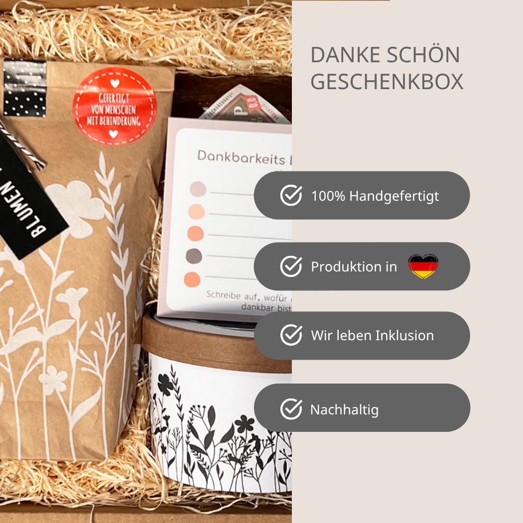 Manchmal sagen kleine Gesten mehr als tausend Worte. Unsere Vielen Dank Geschenkbox ist die ideale Wahl, um einem besonderen Menschen für seine Unterstützung und Hilfe zu danken. Ob für kleine Gefälligkeiten oder als großes Dankeschön, diese Box ist perfekt, um deine Dankbarkeit auf liebevolle Weise auszudrücken.