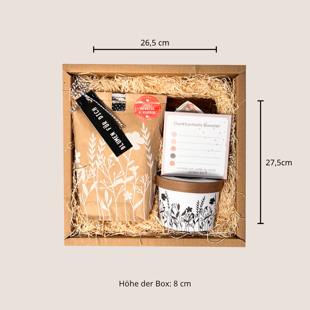 Diese Dankeschön Geschenkbox ist prall gefüllt mit netten Kleinigkeiten, die deinem Dank von Herzen Ausdruck verleihen. Egal, ob du dich bei einem Freund, einem Kollegen oder einem großartigen Helfer bedanken möchtest, mit dieser Box schenkst du ein Lächeln und zeigst, wie sehr du die Hilfe schätzt.