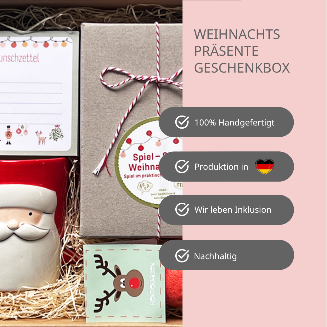 Mit dieser Geschenkbox verschenkst du nicht nur Dinge, sondern echte Weihnachtsstimmung, Vorfreude und besondere Erinnerungen. Eine Box, die Freude macht, Gutes bewirkt und nachhaltig überrascht.